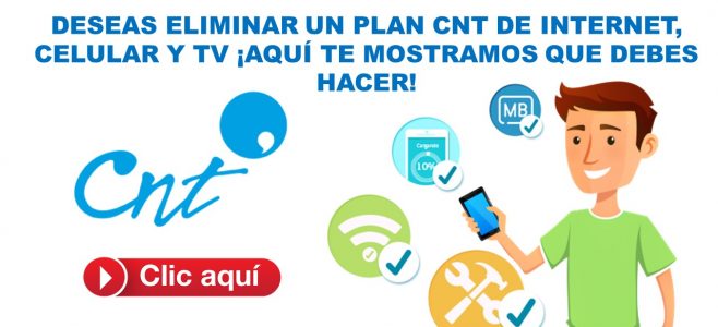 Deseas eliminar un plan CNT de Internet, celular y Tv ¡aquí te mostramos que debes hacer!. La corporación Nacional de Telecomunicaciones (CNT) ofrece una serie de servicios a sus clientes, entre ellos CNT teléfonos, CNT tv, CNT internet; etc. En caso de que tengas motivos para querer cancelar tu plan en CNT (cualquiera de sus servicios), … Sigue leyendo Deseas eliminar un plan CNT de Internet, celular y Tv ¡aquí te mostramos que debes hacer!
